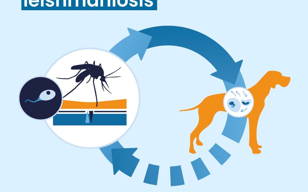 La leishmaniosis es una zoonosis, por lo que se trata de una enfermedad transmisible de animales a seres humanos. Está provocada por el parásito leishmania spp que es inoculado en el animal mediante la picadura del flebótomo, un insecto parecido a un mosquito. Este adquiere el parásito al picar a otro ser infectado, habitualmente otro perro.